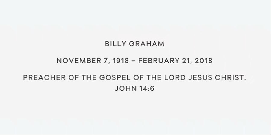 按照葛培理牧师生前本人的要求,墓碑碑文上将写上: