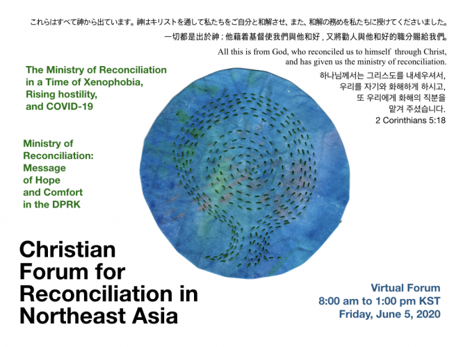 由于新冠疫情,原定于2020年6月5日的第七届东北亚基督徒和好论坛(The seventh Annual Christian Forum for Reconciliation in Northeast Asia)首次于线上举行。
