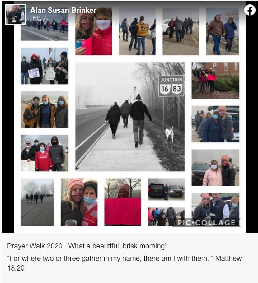 11月14日,莉亚·布林克(Leah Brinker)在科肖克顿县组织并带领了这次“2020祈祷之行”(Prayer Walk 2020)。这支由80人组成的队伍在行进至两英里半时,一起以耶稣之名欢呼。