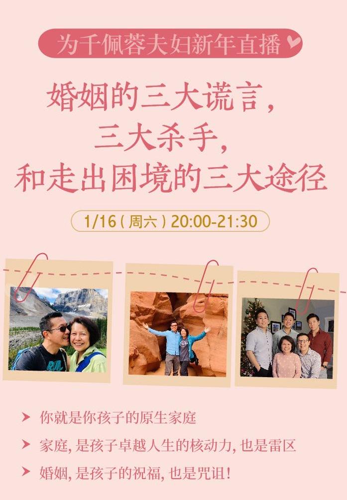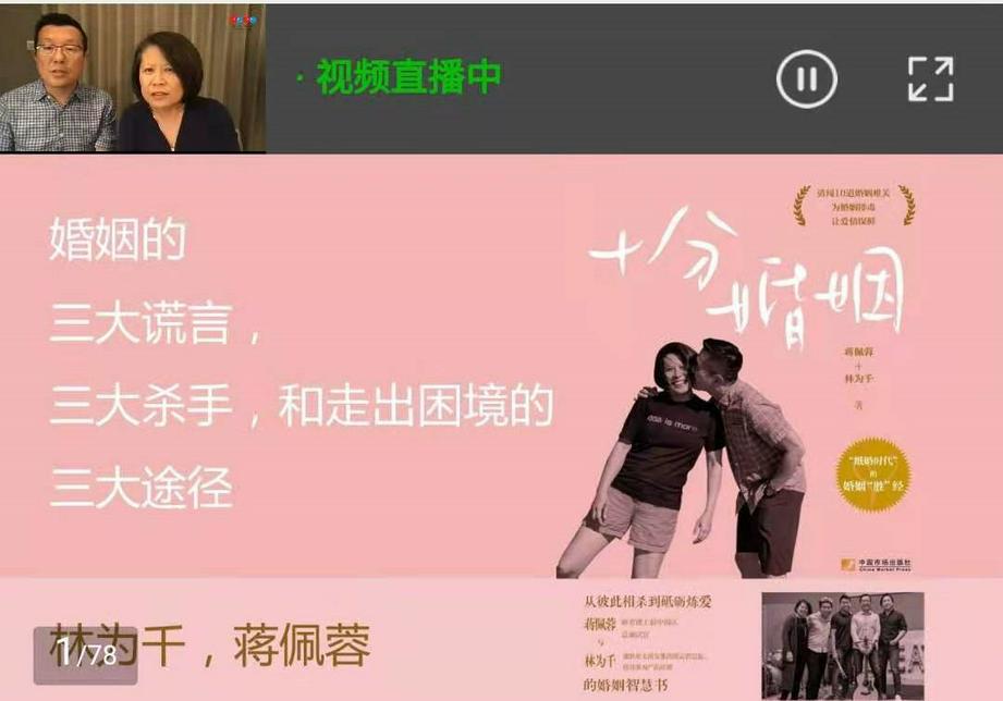 那么,到底婚姻当中需要注意哪些忌讳呢?在2021年1月16日晚上8点一教育机构做的视频讲座中,,主讲人林为千和蒋佩蓉夫妻以《十分婚姻》为题,分享了婚姻的三大谎言、三大杀手和走出困境的三大途径,令在线聆听的观众受益匪浅。