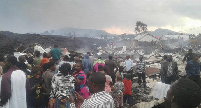 火山于5月22日喷发时,人们从戈马逃至萨科村和南基伍省,甚至是邻国卢旺达。阿姆西尼说,他们中很多人在离开时并未携带任何东西,到23日返回时发现房屋早已被岩浆覆盖。