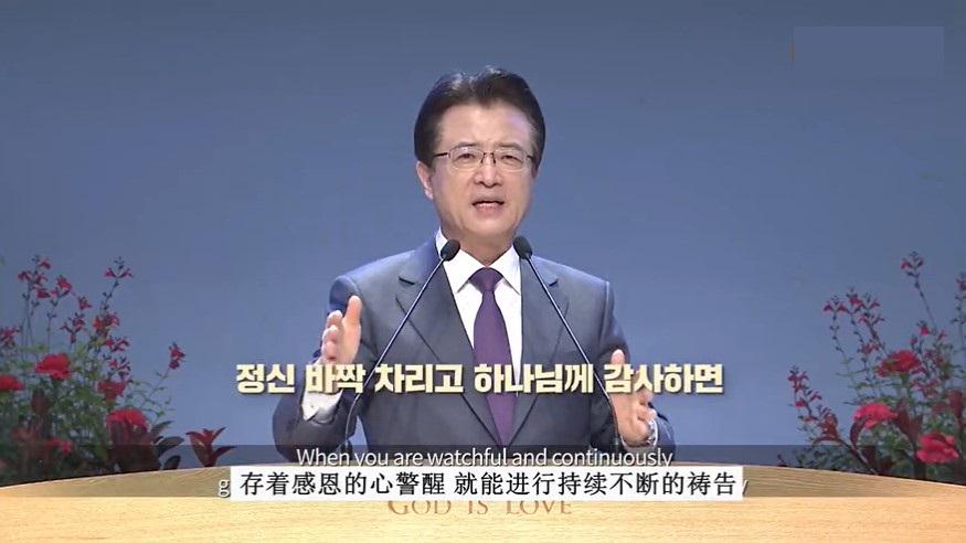 “即使无法感恩仍竭力感恩,事虽未成却先行感恩,无所畏惧献上完全的感恩时,通过这感恩会发生什么事呢?愿神使我们活出蒙神喜悦的人生!当我们通过深层次的祷告作出不一样的解读时,当我们不作以自我为中心的祷告,而是献上蒙神喜悦的祷告时,我们虽然无法脱离这些无可言喻的苦难,但借着这深沉的祷告,这些苦难会All Together互相效力在我们身上成就喜乐、感恩与美善。”