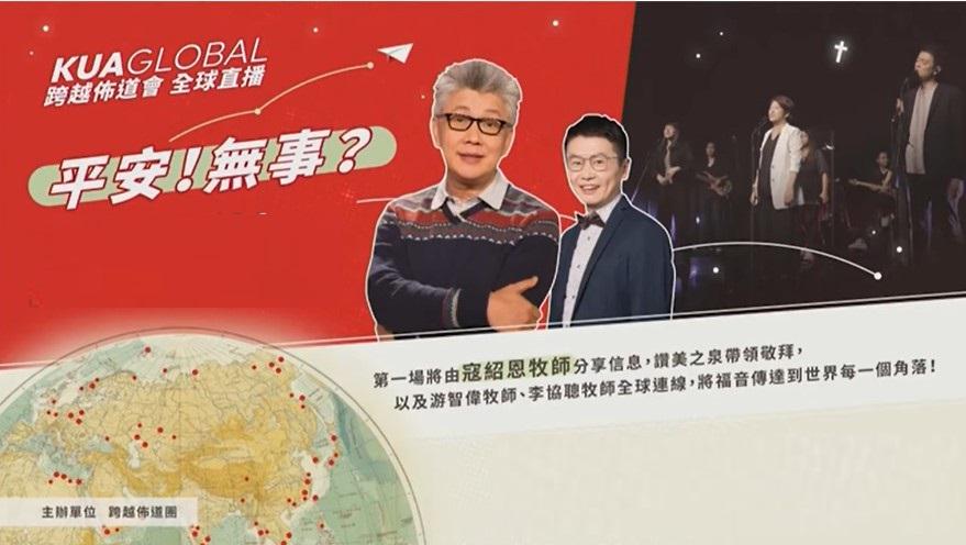 2021年7月31日,由跨越布道团(KUA GLOBAL)举办的布道会“平安!无事?”全球网络首播,邀请了赞美之泉带领敬拜,寇绍恩牧师为大家分享信息,李协聪牧师与游智伟牧师作主持。