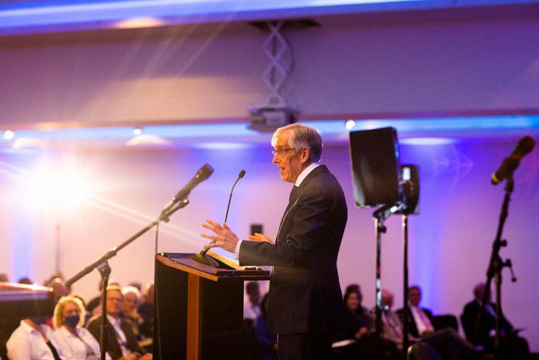 在葛培理布道协会 (BGEA) 在英国各地举办的四场布道峰会中的第一场上,这位自由教会会议主持向数百名牧师和福音派人士发表讲话。