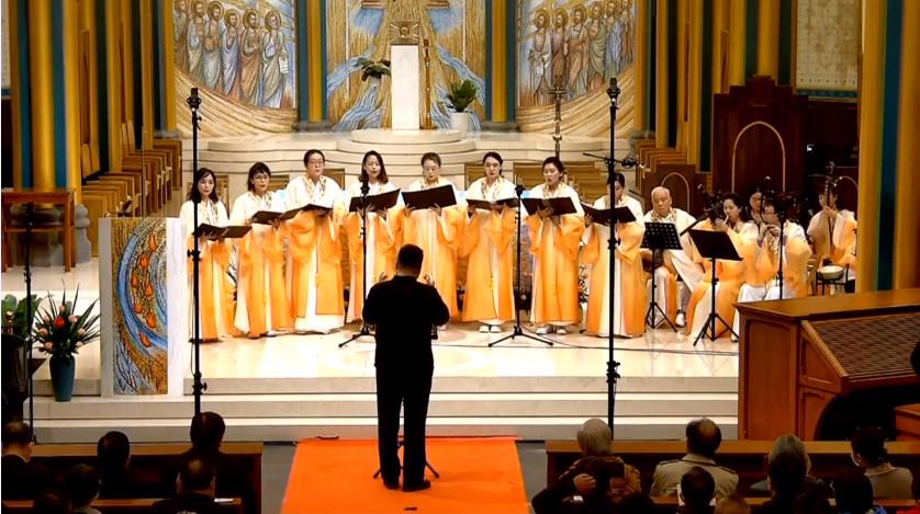 最后,伴随着一首压轴曲目《中华合一弥撒·天主经》,音乐会掀起高潮,也渐渐落下帷幕。