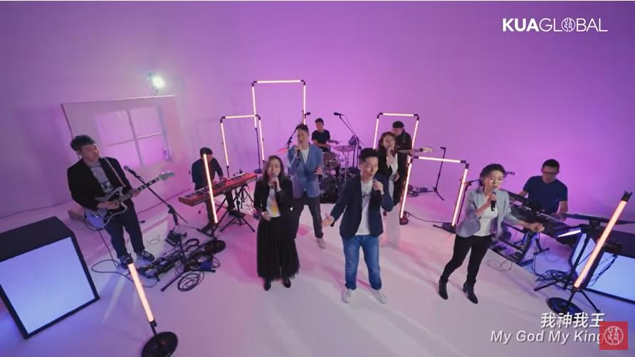 《我神我王》这首诗歌是去年KUA敬拜团在疫情中创作的。KUA敬拜团也是在疫情期间创立的,是神很奇妙地把乐手、歌手和所有幕后人员聚集在一起,让KUA敬拜团的声音和信息可以传递给世界各地的华人教会。有一天大家一起敬拜的时候,一个旋律的出现让大家创作了这首歌。这首歌也作为初熟的果子献给神。盼望在疫情期间这首歌可以鼓励大家:“我们不会被压碎,我们也不用失望,因为我们的神、我们的王与我们同在。”