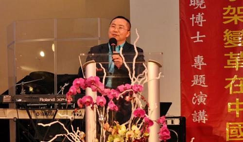 这是中国著名经济学家赵晓博士日前在洛杉矶演讲“伟大的复兴在召唤:十字架变革在中国”中催人振奋的话语。身为虔诚基督徒的赵晓博士的分享给在座的华人信徒极大鼓励,现场反映热烈。此次演讲特会由南加州华人全福会主办。