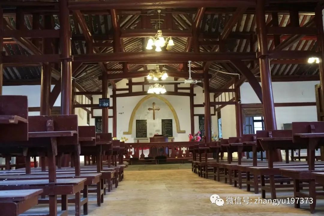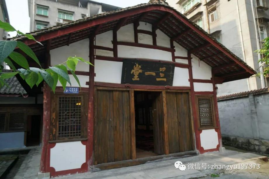 三一堂,建于1893年,纯木质结构,可以说是圣约翰大教堂的微缩版。纯木质结构的百年教堂,在今天实属罕见。1898年,英国探险家伊莎贝拉.伯德来到阆中,用摄影和文字记录下她眼中的三一堂:“教堂几乎全是用中国人的钱和馈赠建造的。它是中式风格,能坐200人,圣坛的窗户用彩色纸替代彩色玻璃,使其流光溢彩。站在外面的是卡塞尔斯主教(盖士利)、威廉斯先生和中国教区委员。”