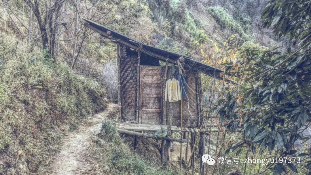终于到达耶利米的家,一个很简易的干栏建筑,用粗木头立起四只脚,搭起木板,围上竹篾,里面有火塘。说到怒江山民的干栏建筑,其实有很多闪光之处,并非那么简单,比如:用大块的竹篾做墙,很通风,不会被火塘的柴火熏过度,而且竹篾的缝隙是横向的,不会有直接的风吹进室内;用片状的大块石材做瓦,白天吸热,晚上散热,让房间里保存阳光的温度;有考究的人家,用长长的薄木块做瓦,在木块上挖出一条窄窄的凹槽,可以引流雨水。这些都是怒江传统建筑的智慧,遗憾在乡村振兴的时代,大片大片的传统民居被定义为棚户区,然后大片大片地被铲除了。当然,我不是反对现代化,而是要尊重文脉的现代化。
