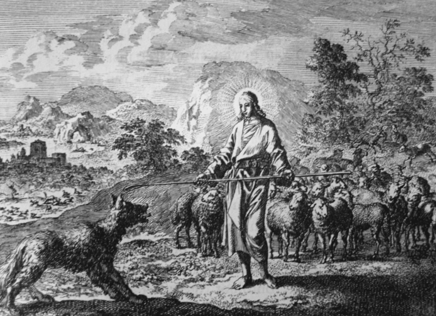 The good shepherd. An etching by Jan Luyken ilustrating