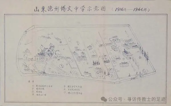 1909年,教会又在德州城东约2华里处,以每亩30大洋购买云昆山(德县枣市街山成玉钱庄经理、回民基督徒)的盐碱地300亩土地,称之为“东地”,先后两次耗资118,500美元,建成大小楼房10余座,平房若干所,分设医院(卫氏博济医院)、学校(博文男子、卫氏女子中学,护校)。