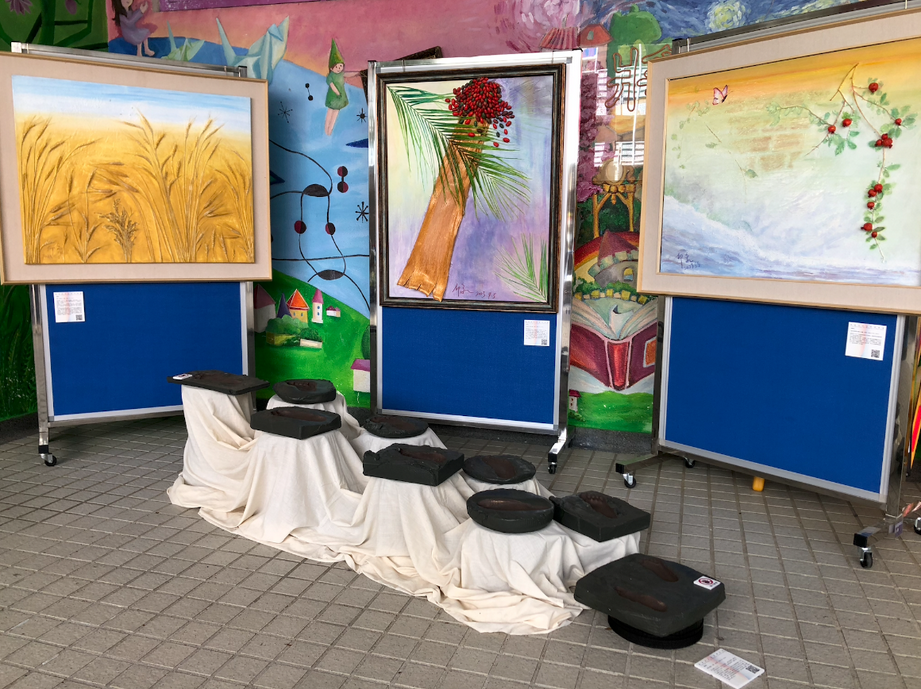 紧扣几场讲座“让艺术走进我们的生活世界”这一主题,为了让艺术走入社区,在10天的展览中,多场工作坊都给游客提供了福音剪纸、石头画、表达艺术体验等可以现场动手又丰富多样的艺术体验机会,让游客体验自己参与做艺术创作和表达的过程。
