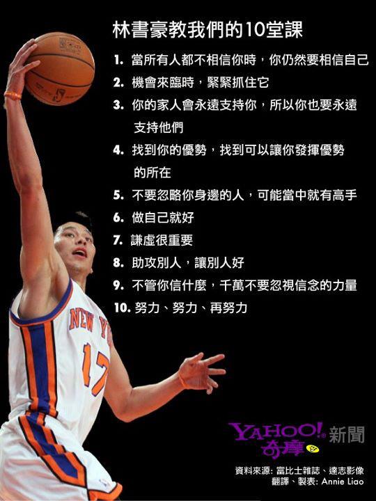 这张照片是富比士杂志列出“我们可以从林书豪身上学到的十件事”我看完之后实在有些话想跟大家说......