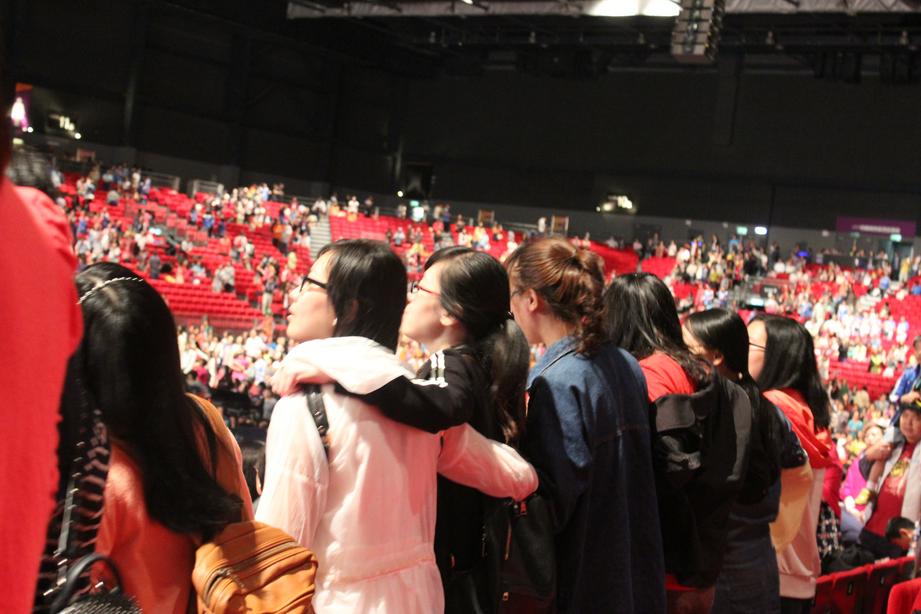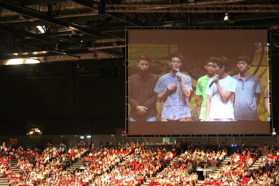 在最后一天聚集中,大家的心情更加激动和兴奋,戴冕恩牧师鼓励年轻人上台分享他们的心声。一群青年上台,全场掌声雷动,看到他们就像看到了国度的希望和未来,不断欢呼给予他们鼓舞。