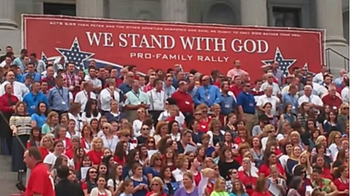 8月29日下午,逾一万人聚集在美国南卡罗来纳州议会大厦,参加主题为“站在神这边,支持家庭”(Stand with God, Pro-Family Rally)的集会。总统候选人佩里呼吁民众与神站在同一边,支持圣经的价值观以及对婚姻的定义。