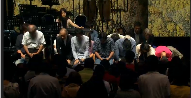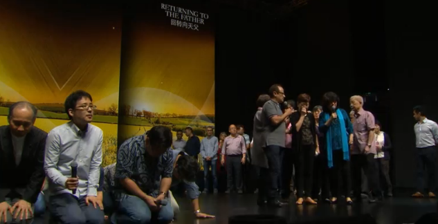 16日的聚会上,“回家”主办方邀请了日本教会的牧者上台,为历史上向新加坡的侵略和占领造成的无数伤害下跪悔改道歉。在聚会开始,戴冕恩牧师说:“我们分享不是要定人的罪,而是要寻求神完全的医治。”