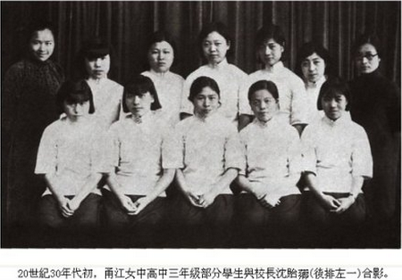 1935年,沈贻芗女士受校董会委派,前往美国宾夕法尼亚州立大学攻读教育学硕士学位。1937年,就在抗战爆发前夕,沈贻芗女士毅然回到祖国,回到了她牵肠挂肚的这所女中。她说:我的命运必须和甬江女中的命运联在一起。沈贻芗女士1990年逝世,她为了教育,一生未婚,不但是位杰出的女校校长,更是一位一生献给教育事业的巾帼教育家。