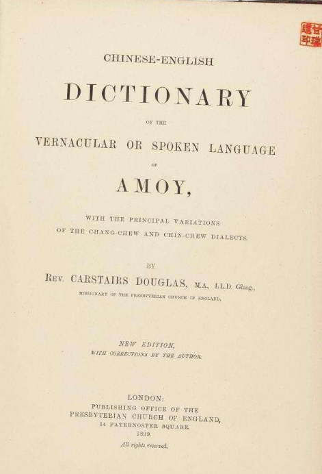 厦门的三公会为了使《辞典》早日完成,派伦敦会的施约翰以及美归正会的打马字协助杜工作。经过不懈的努力,《厦英大辞典》终于在1873年问世。此书是第一部厦门腔白话华英辞典。一出版立即成为所有学习闽南语者的必备书。书的特色是全书无汉字,只用罗马拼音。