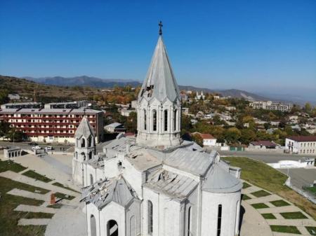 军事冲突以舒沙的陷落而划上句号,该市是一座为圣救主基督大教堂所守护的城镇。11月9日停火协议签署后,阿塞拜疆军队进入城市,大教堂随即成为他们的第一个目标:内外墙壁随即遭以涂鸦破坏。在战争中,大教堂已经借由阿塞拜疆军队的猛烈炮击而满目疮痍,后者队伍中还存在有数千名叙利亚圣战士雇佣军。
