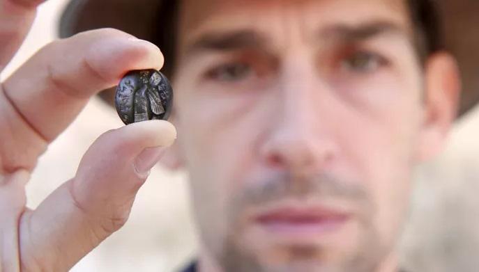 以色列文物管理局宣布,该枚印章发现于耶路撒冷大卫城公园,上面有一个长着翅膀的人物,该人手掌张开并朝前高举。